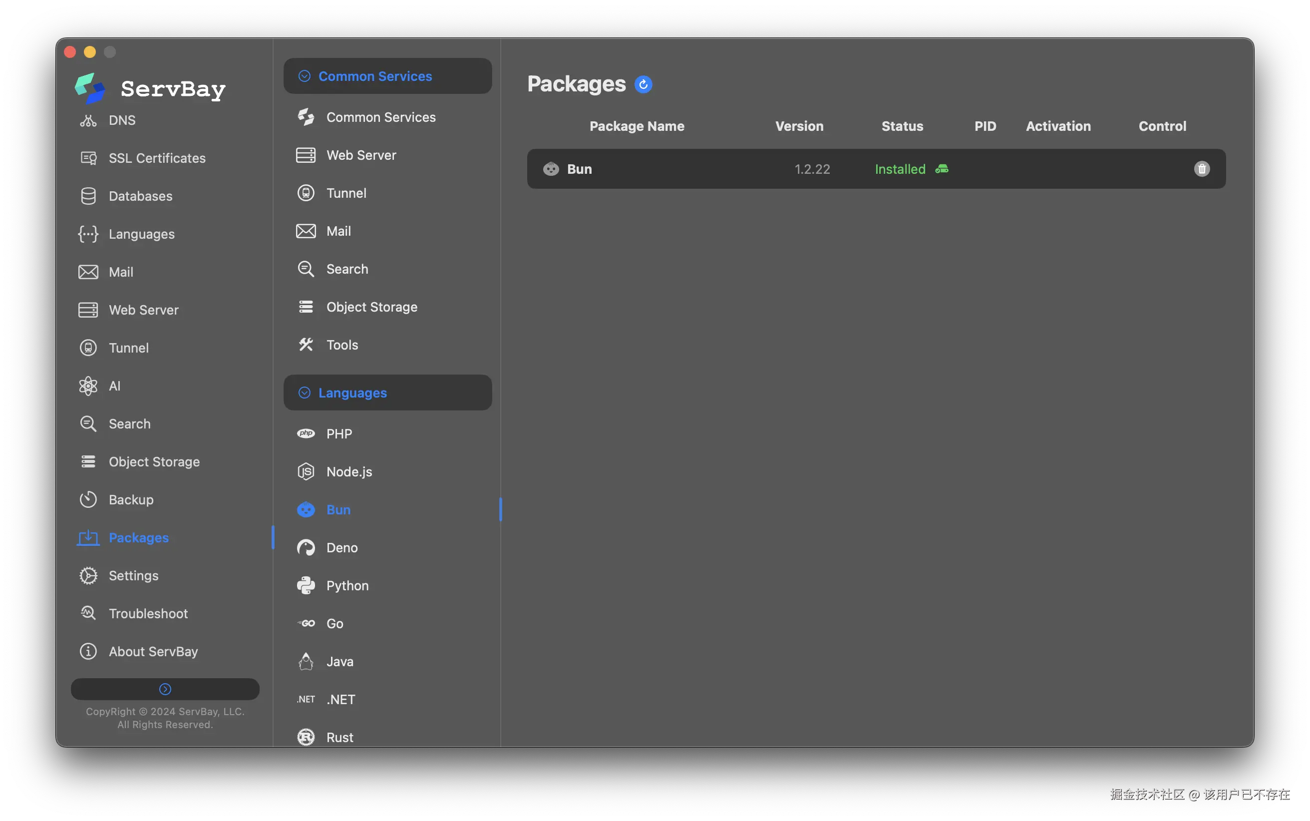 而一个好的开始是成功的一半。在体验 Bun 带来的丝滑开发流程之前,不妨先用 ServBay 来搞定环境安装这个前置任务。它铺好了路,用户能更快地在 Bun 的世界里驰骋。