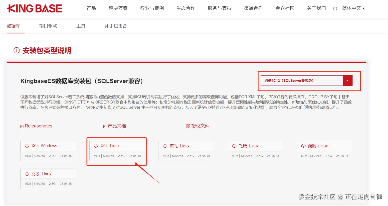 本文主要针对Windows系统进行交流体验,分享给大家一起交流学习!打开上面金仓官网地址,然后筛选 V9R4C12(SQLServer兼容版),如下图所示