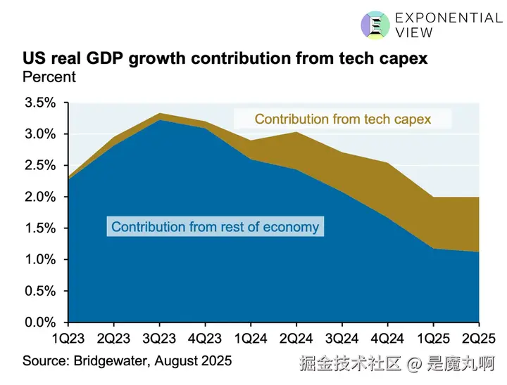 资本支出(capex)的激增,倾注到AI所需的物理基础设施中,是一种乐观主义行为。这就是capex的性质。今天花钱,相信它将成为明天收入的渠道。如果今天投得好,它最终将带来生产力提升和经济扩张。