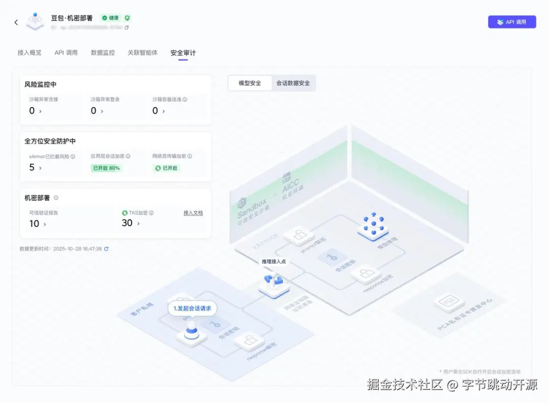 近日,火山方舟作为一站式大模型服务平台,将 AICC 机密计算技术原生内置于平台,在行业内率先推出 MaaS 原生的机密推理服务。用户在火山方舟选择“机密部署”方式,即可一键开启豆包大模型的机密推理服务。