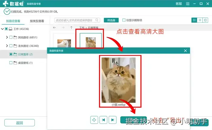 为什么小编在大家误删电脑照片后,最为推荐大家使用数据 蛙恢复专家进行照片数据恢复呢?因为这款软件拥有一个十分出色的功能,那就是“图片预览功能”。我们在使用它进行丢失图片扫描时,无需盲目地将所有的删除后可恢复照片全部进行导出,再逐一查看图片内容,找到需要恢复的目标照片。