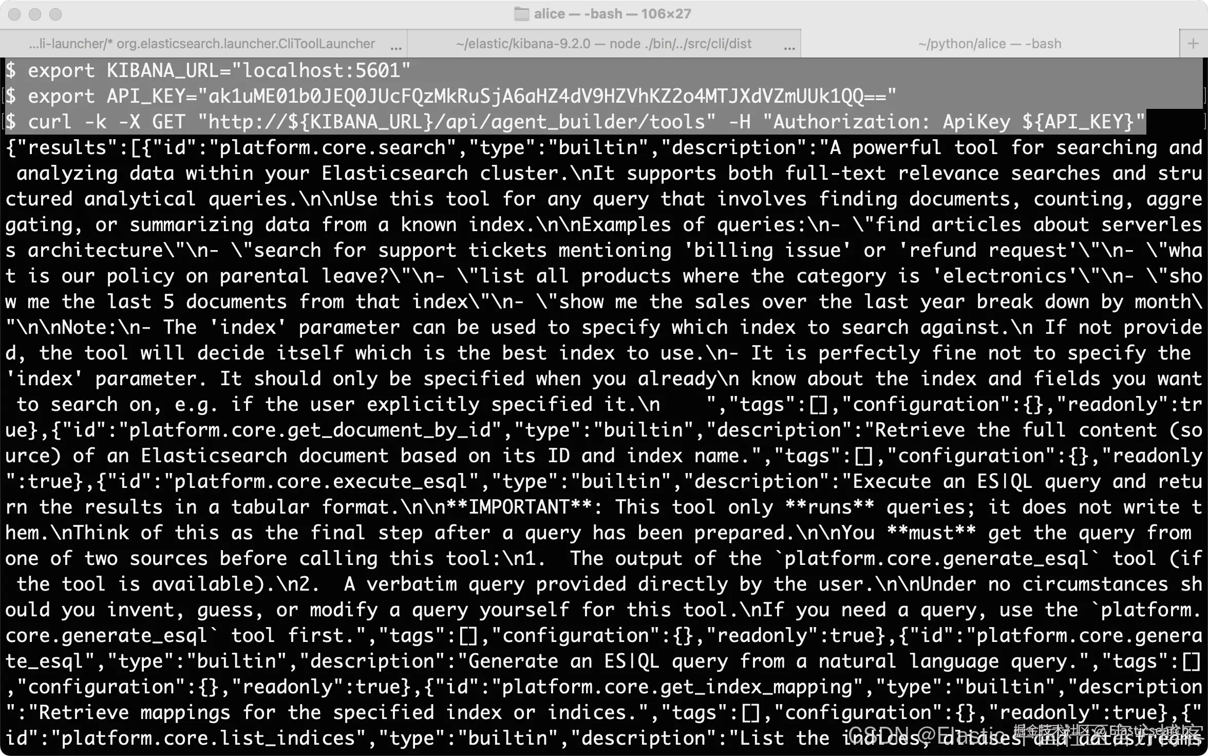 1. curl -X GET "https://${KIBANA_URL}/api/agent_builder/tools" \