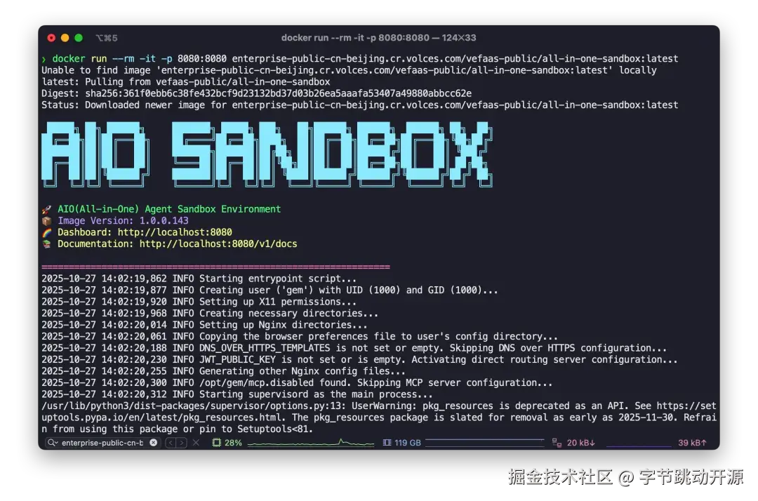 docker run --rm -it -p 8080:8080 enterprise-public-cn-beijing.cr.volces.com/vefaas-public/all-in-one-sandbox:latest