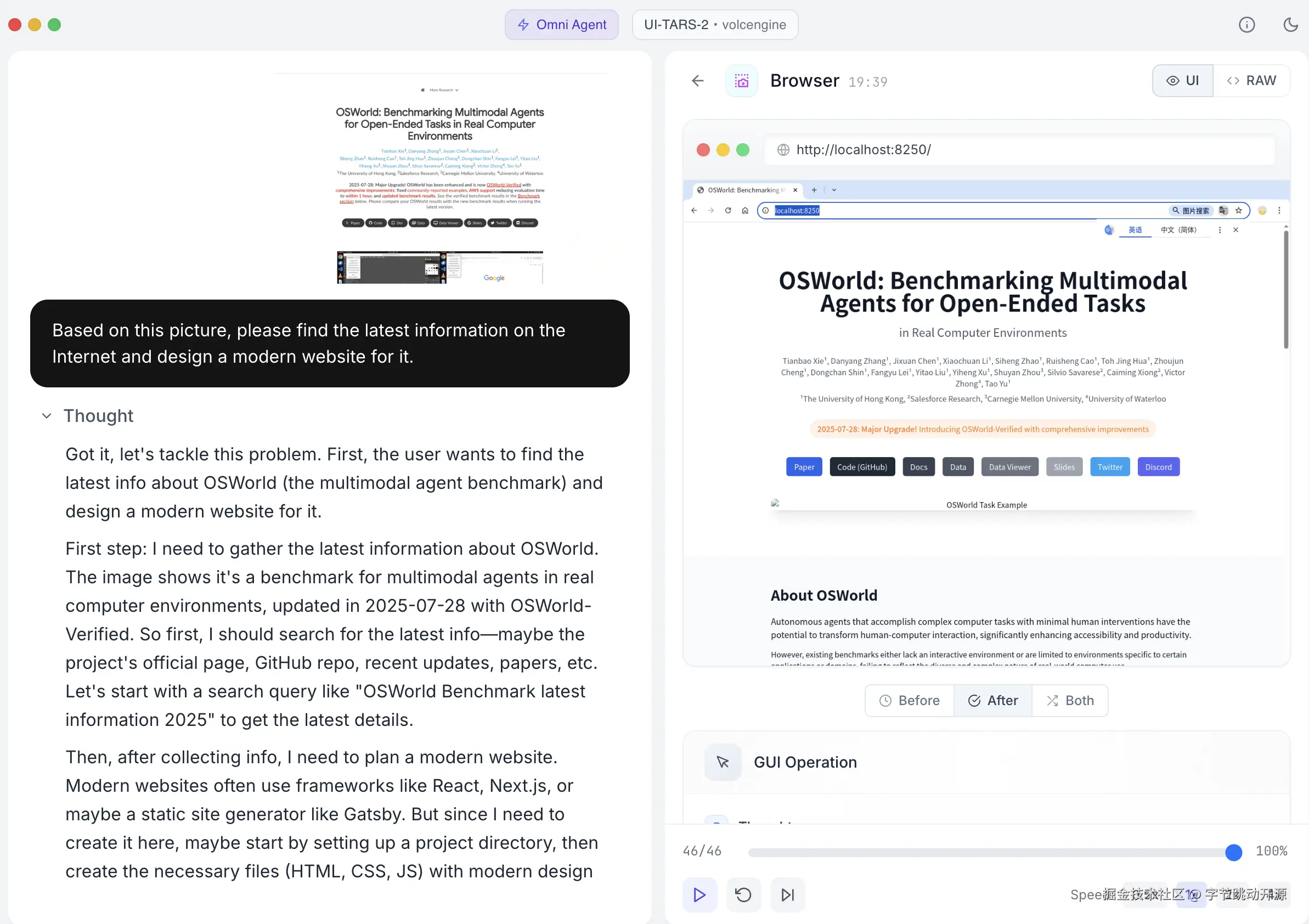 | Based on this picture, please find the latest information on the Internet and design a modern website for it. 根据这张OSWorld图片,请在互联网上查找最新信息并为其设计一个现代化的网站。 | Replay | 同上 |