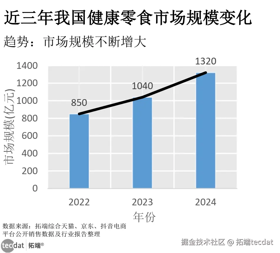 在消费认知升级与“健康化”趋势推动下,我国健康零食市场已从“小众需求”转向“大众选择”,过去3年呈现显著扩容态势。