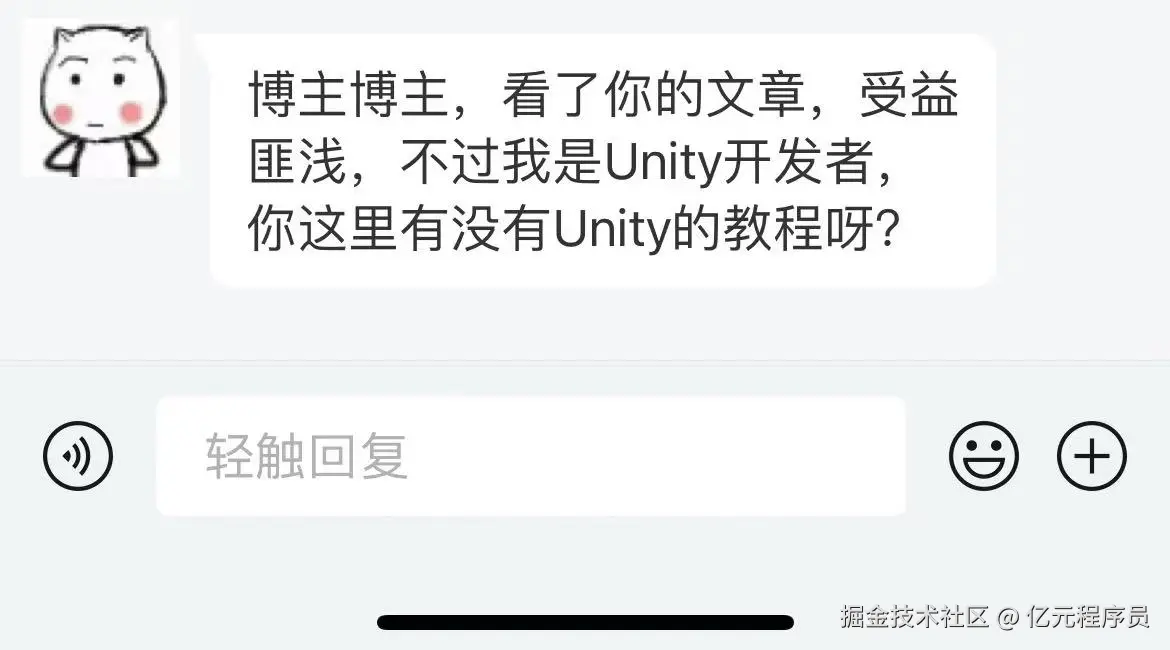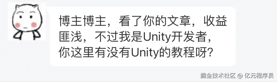 我是"亿元程序员",一位有着8年游戏行业经验的主程。在游戏开发中,希望能给到您帮助, 也希望通过您能帮助到大家。