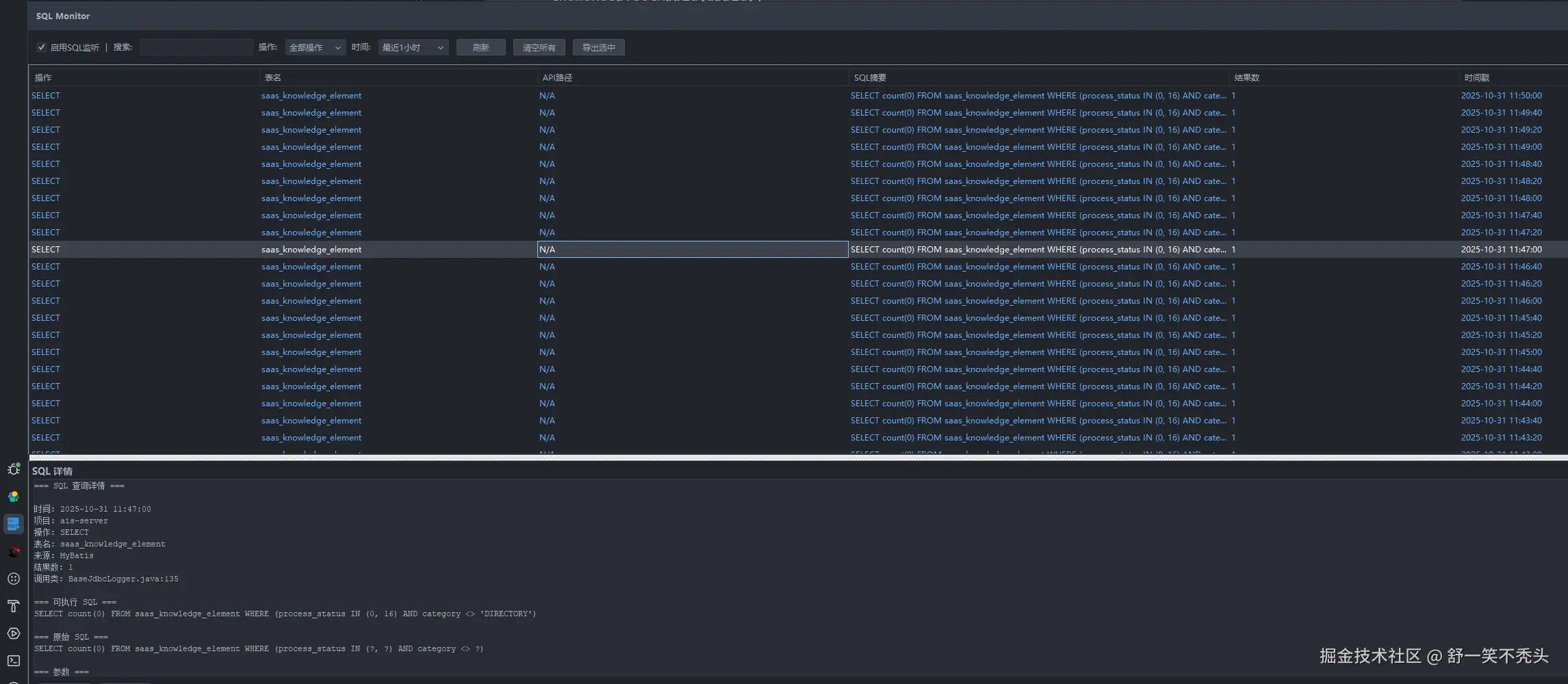 - ✅ N+1 检测:同一个 API 下出现 10+ 条相似 SQL?立刻警觉!