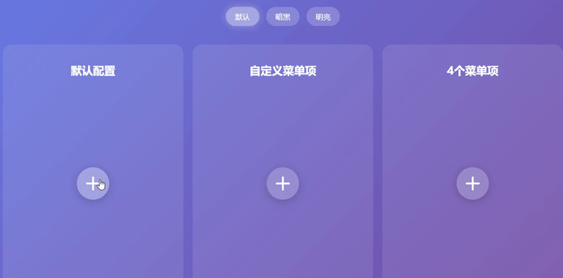 实现的效果: 1、圆形展开动画:点击中心按钮,菜单项会以圆形轨迹展开 2、多种主题:支持默认、暗黑、明亮三种主题风格 3、完全可定制:菜单项数量、大小、半径都可以自定义 4、平滑动画:使用贝塞尔曲线实现流畅的展开/收起动画 5、悬停提示:鼠标悬停显示功能提示