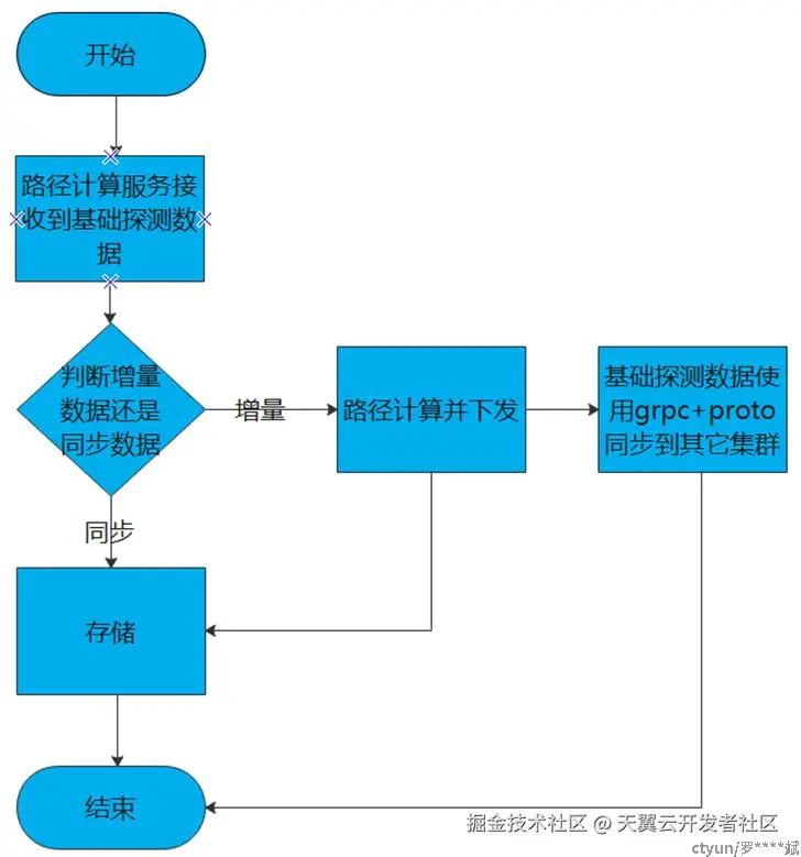 3.1如果是增量数据,则进行路径计算并下发结果,基础探测数据存储到本区域集群