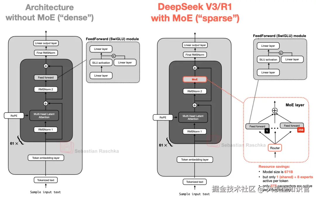 尽管本文聚焦于 2025 年发布的架构,但鉴于 DeepSeek V3 是在 2025 年随 DeepSeek R1 的推出才获得广泛关注与采用,将其纳入讨论是合理的。