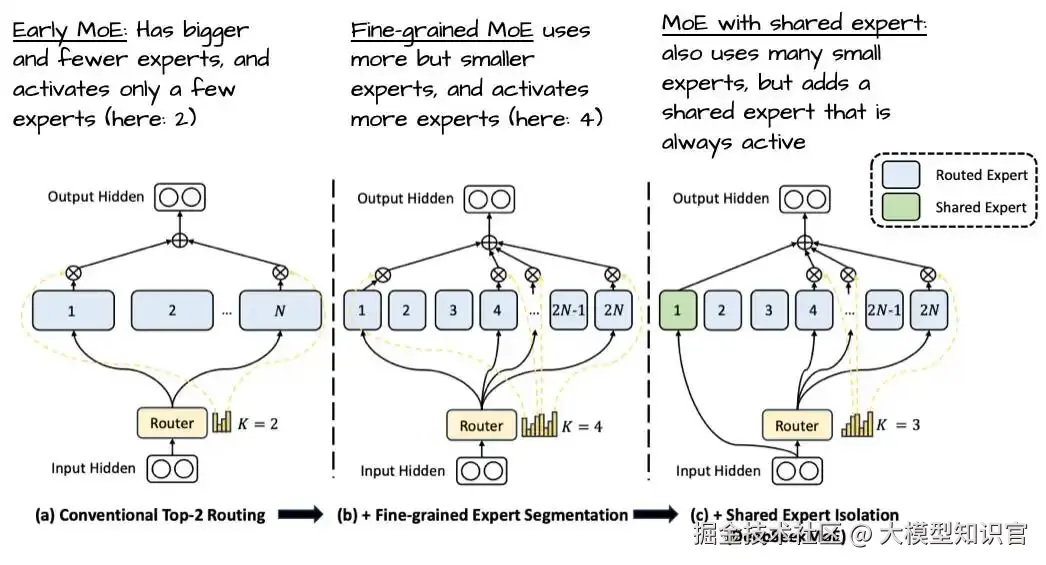 DeepSeek 架构中另一项值得强调的重大组件是其专家混合(MoE)层。虽然 MoE 并非 DeepSeek 首创,但今年它强势回归,后文将讨论的许多架构也采用了该技术。