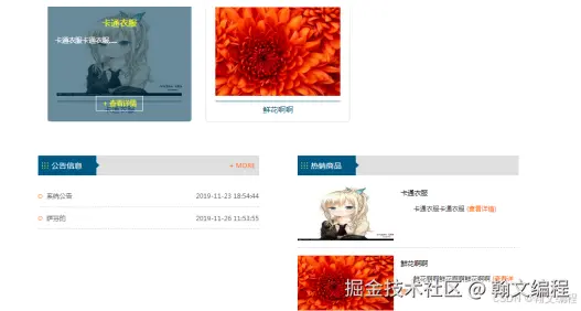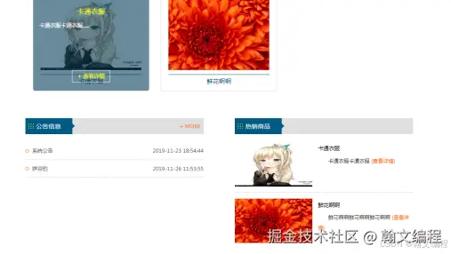 系统首页展示商品图信息,以及最新公告信息 本系统主界面如图5-1所示。