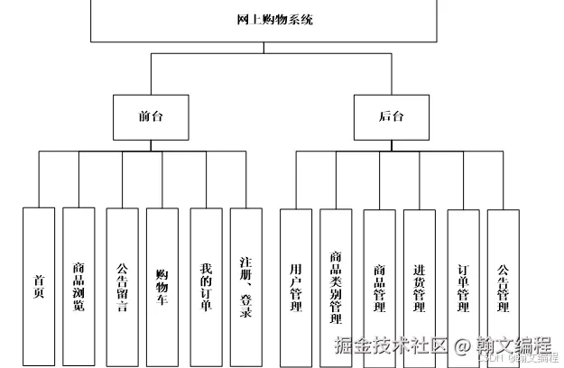 网上购物系统,主要包括前台和后台主要功能,如图所示。