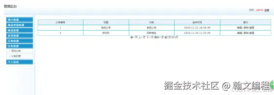 图5-3 公告管理界面