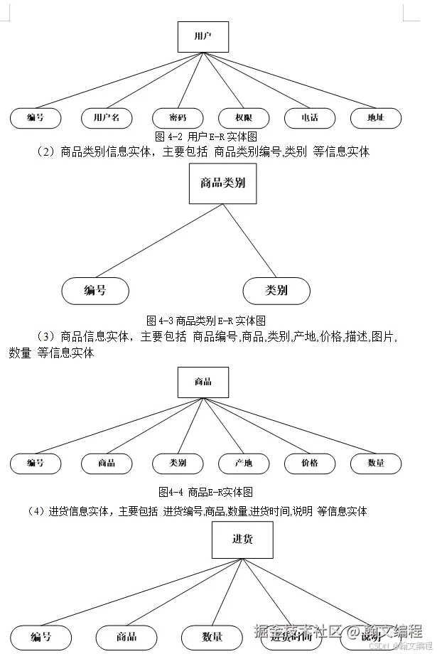 为了满足系统的功能需求,抽象出用户实体,供应商实体,商品实体,入库实体,出库实体,系统公告实体等实体E-R,具体如下: