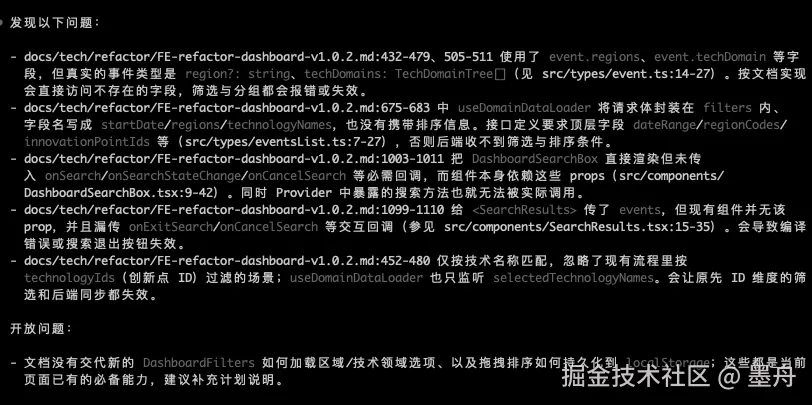 @docs/prd/FE_refactor_prd.md 我已经根据需求v1.0.2,完成了技术方案 @docs/tech/refactor/FE-refactor-dashboard-v1.0.2, 通读相关的代码,review我的技术文档是否有问题,中文回答