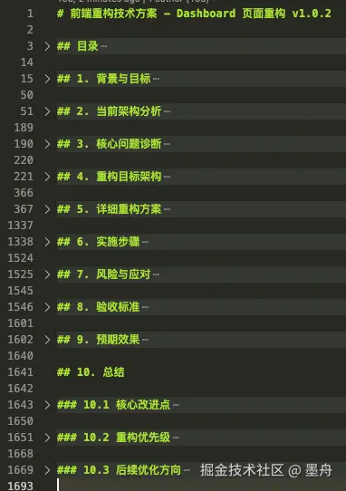 然后Claude Code就开始一顿操作了,最后产出了一份技术文档,嗯,确实很全,接近一千七百行