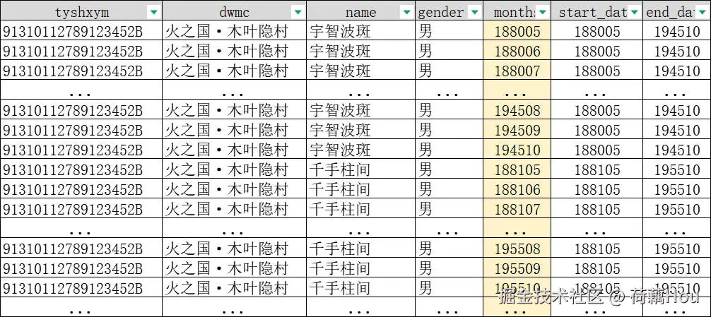 需要根据start_date,end_date转换成每个月,类似于以下这种数据