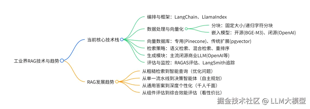 然而,虽然学术界已经开发出了很多种比较复杂的RAG系统,但是当前业界的主流RAG技术栈,是一个以实用性、稳定性和高性价比为核心的成熟组合。而那些高级RAG技术,则构成了未来2-3年内,业界技术演进和升级的主要路线图。
