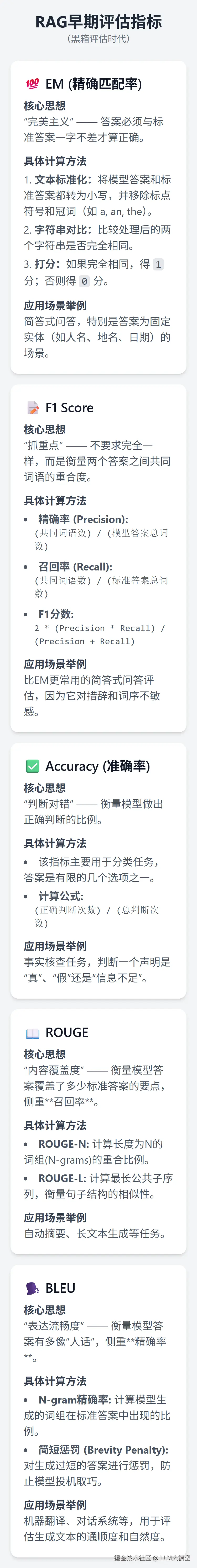 RAG系统的评估方式经历了从“简单”到“复杂”,从“单一”到“体系化”的发展路径。这些评估方法有各自的侧重点,是属于“按照业务场景”组合使用的状态。