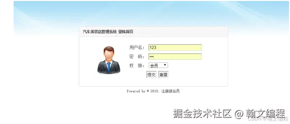 登录系统首页,出现用户名、密码的输入框,填写用户名和密码点击【提交】按钮,即可登录;也可以点击【重置】按钮,进行重新录入。具体的登录页面如图6.1所示: