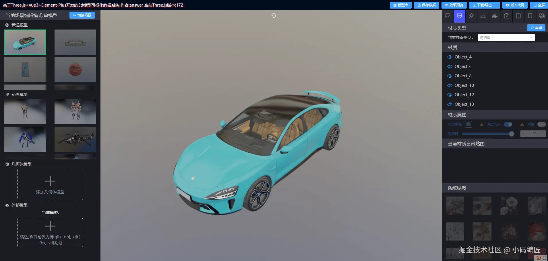 今天推荐一款基于Three.js、Vue3、Typescript和Element-Plus的3D模型可视化编辑系统,为用户提供一个直观、高效、易用的3D模型编辑平台。