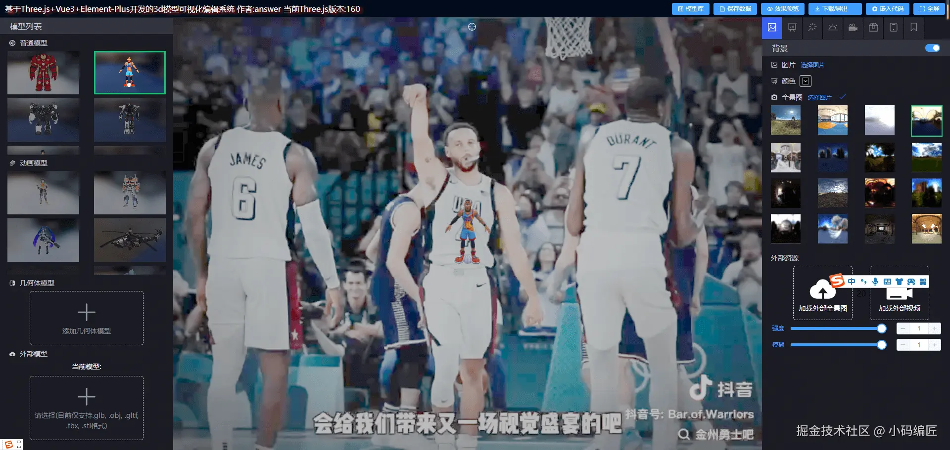 Three.js、Vue3、Typescript、3D模型、可视化编辑、Element-Plus、模块化设计、VR支持、开源项目、前端框架