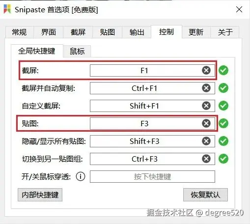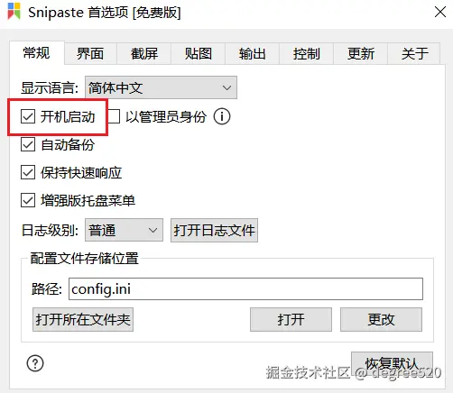 点击这款软件Snipaste的首选项,里面还有一些语言的设置,开机是否自启动。在控制页面,可以设置快捷键,大家可以根据自己需要进行设置,其他功能大家可以自行去研究一下。