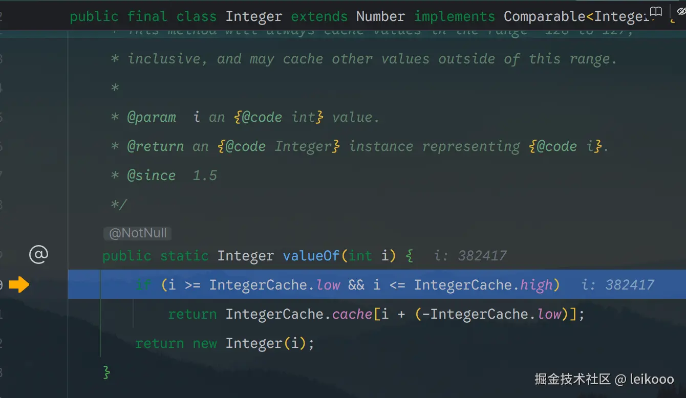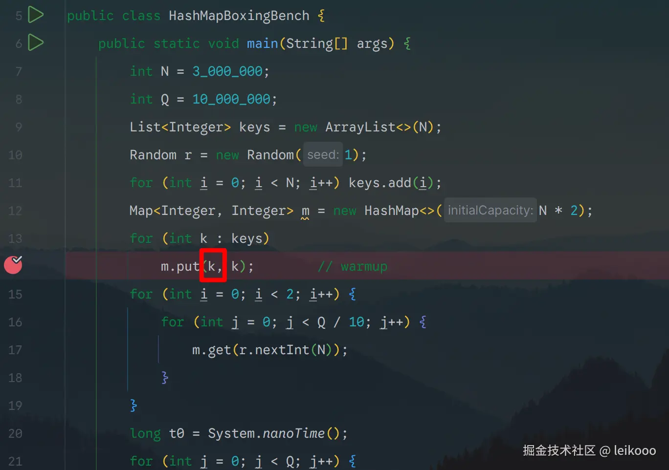 这里传入的是 k 是 int 类型的,含有隐式装箱 Integer.valueOf(k)