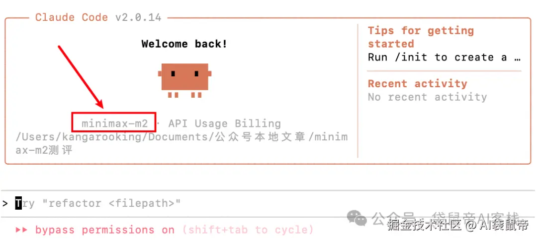 第四步,使用codex --profile m2命令,指定模型来启动,这样Codex就会默认使用我们配置好的M2模型了。