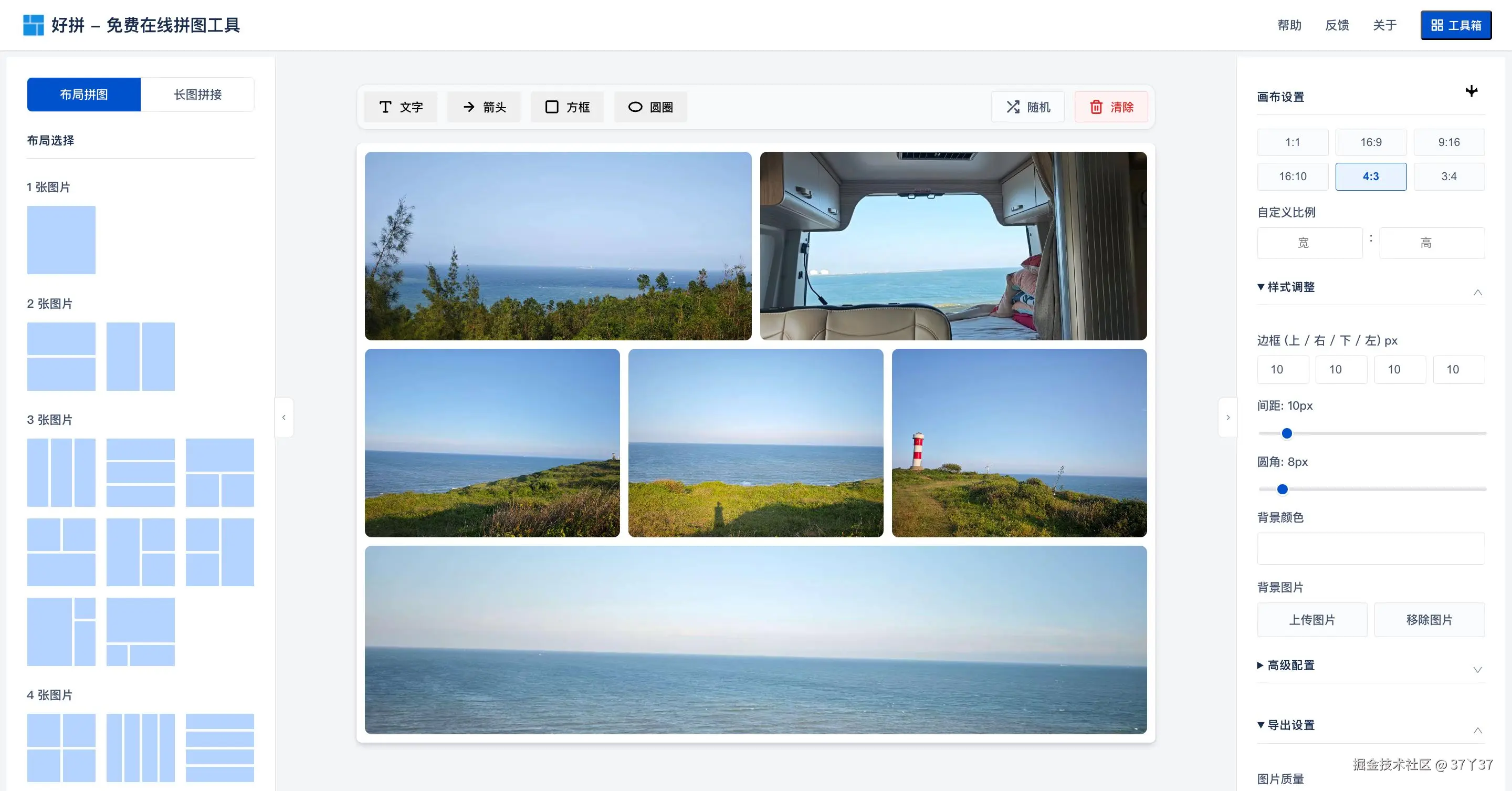 好拼是这几个工具里最早、也是目前最成熟的一个。它的核心功能是布局拼图和长图拼接,无论是把多张图片按网格布局,还是垂直或水平无缝拼接,都能一键搞定。无论是我们平常写文章、发朋友圈,还是发布小红书图集,有需要图片拼接的场景下都可以用到它。使用非常简单,功能特别丰富,图片拼接场景可以告别复杂的截图和修图软件了