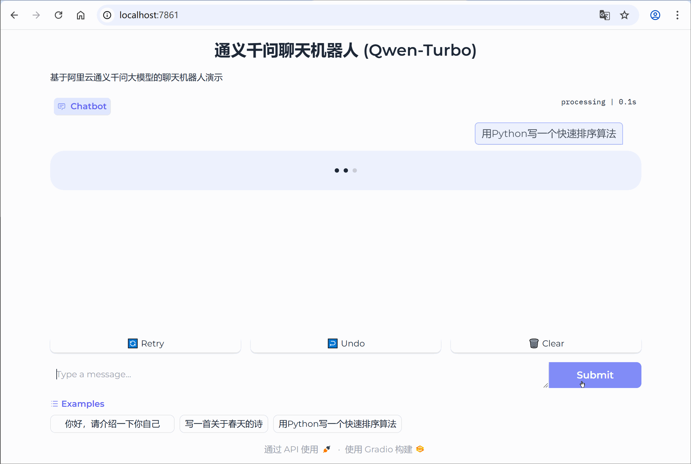 2. 通过qwen-turbo模型生成聊天机器人演示