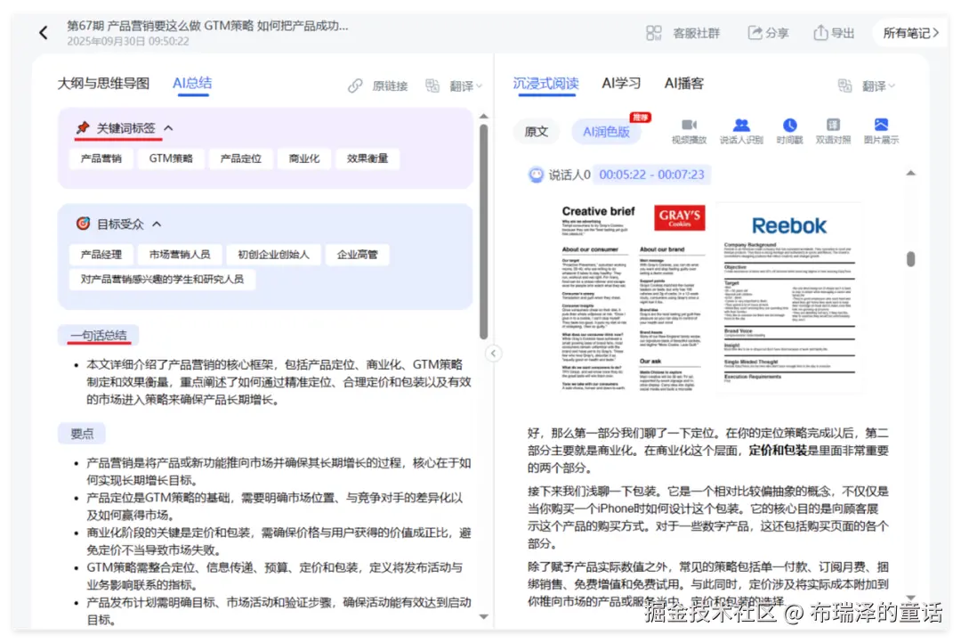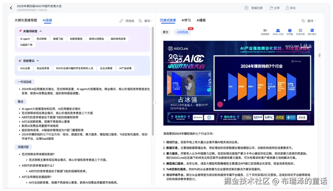 解析后,进入无干扰阅读模式,AI会同步生成一份内容摘要,帮你快速抓住核心论点。