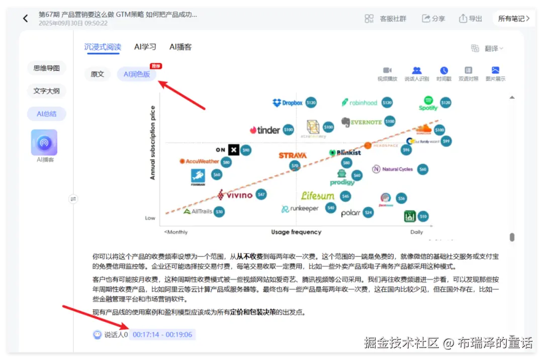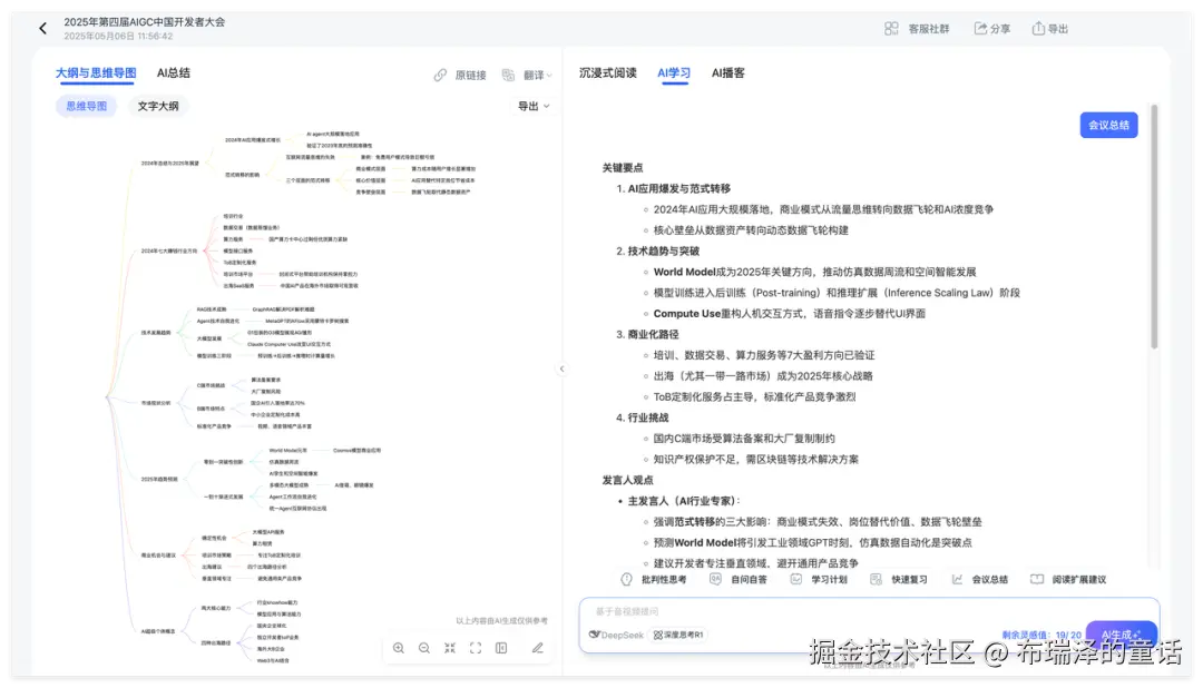 不到1分钟就能转成文字稿,并提取关键内容和时间点,让你扫一眼就掌握精华。