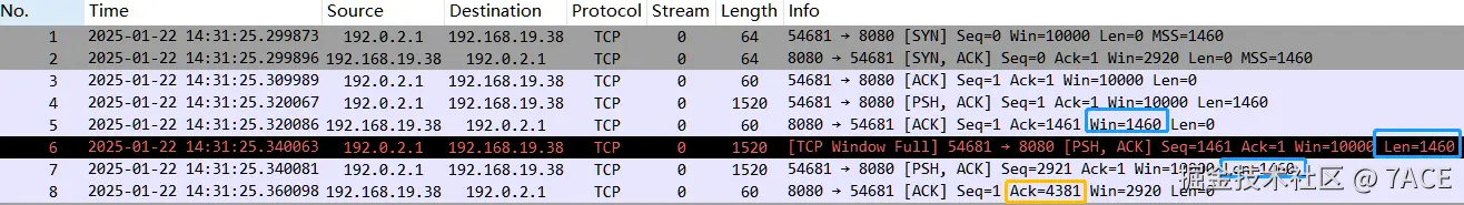 首先简单回顾一下上次接收端能收的问题,如下脚本以及数据包信息,通过 setsockopt 方式限制了服务器端的接收缓存。