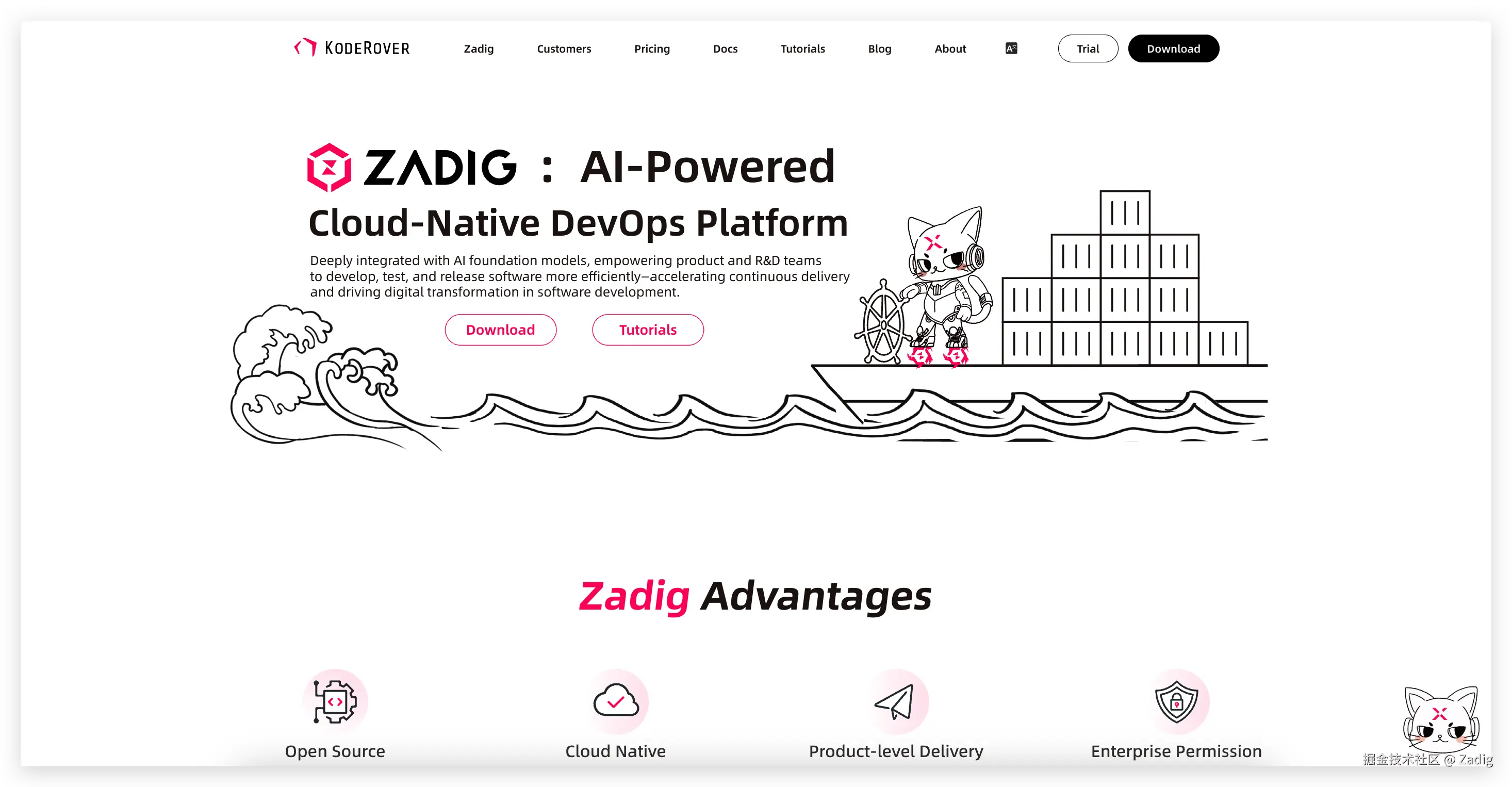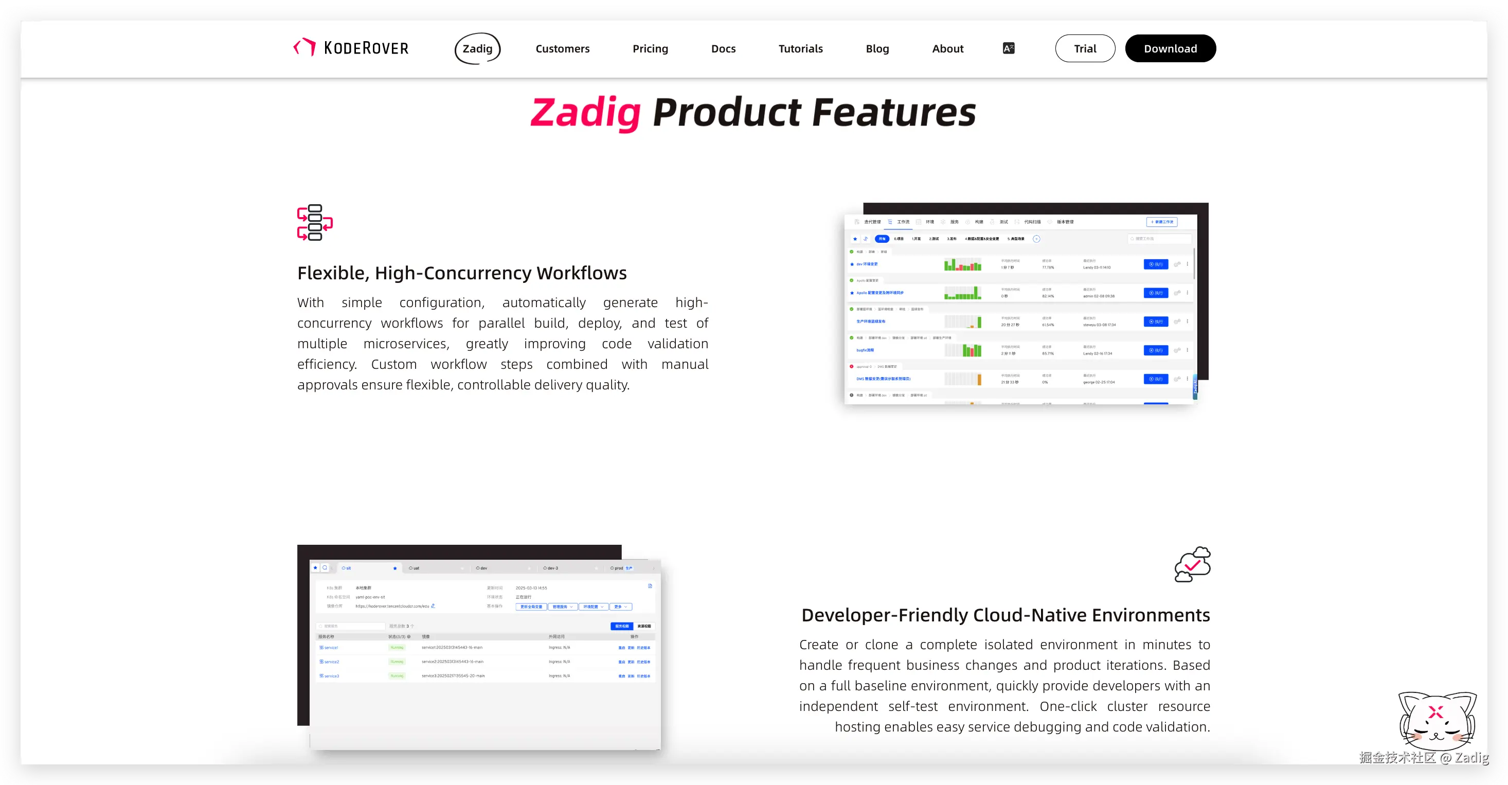 全新设计的英文官网,以清晰的架构与国际化的视觉语言,全面展示了 Zadig 的核心特性与技术优势,帮助用户快速洞察其自动化与工程效能价值。