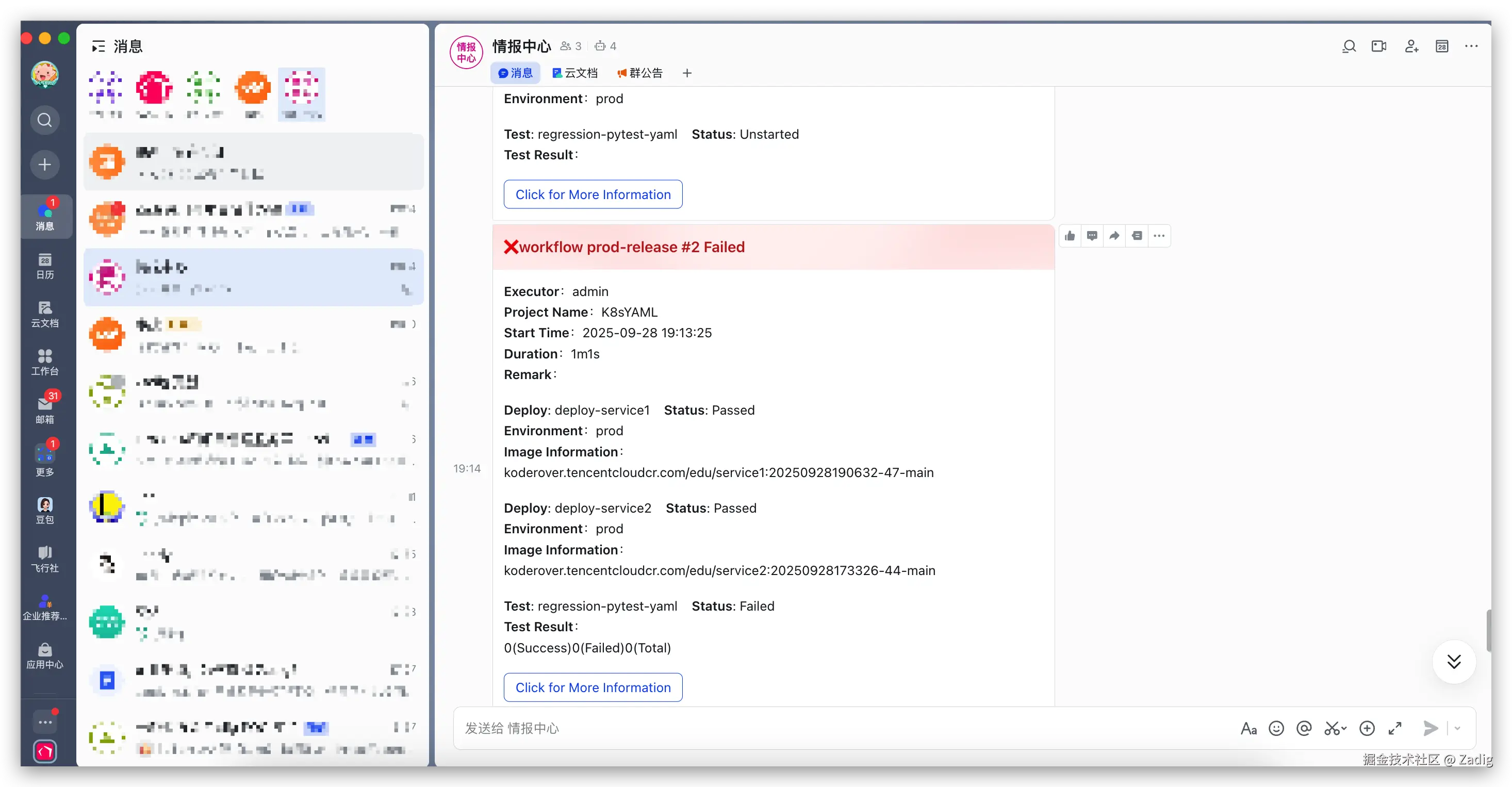 在协同层面,Zadig 现已实现从审批流程、消息通知到团队协作的全场景英文覆盖。更进一步,我们原生适配了飞书国际版、Microsoft Teams 等主流协作工具,将系统告警与审批动态实时推送至团队沟通现场,使全球成员能够无视地域差异,实现聚焦高效的实时协作。