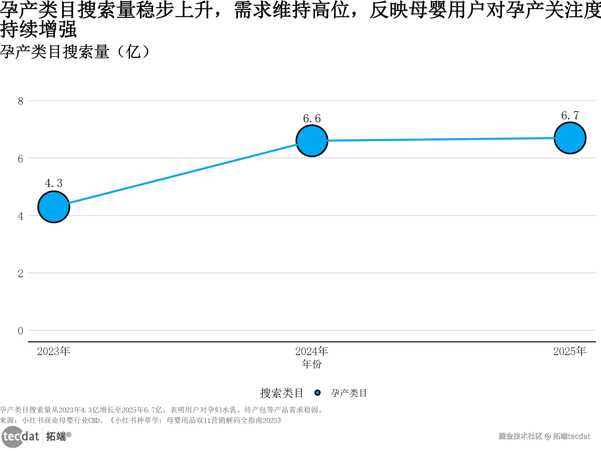 3秒解读:孕产搜索量2023-2024年涨53%(快速增长),2024-2025年涨1.5%(稳定高位),需求从“增量扩张”转向“存量精细化”。