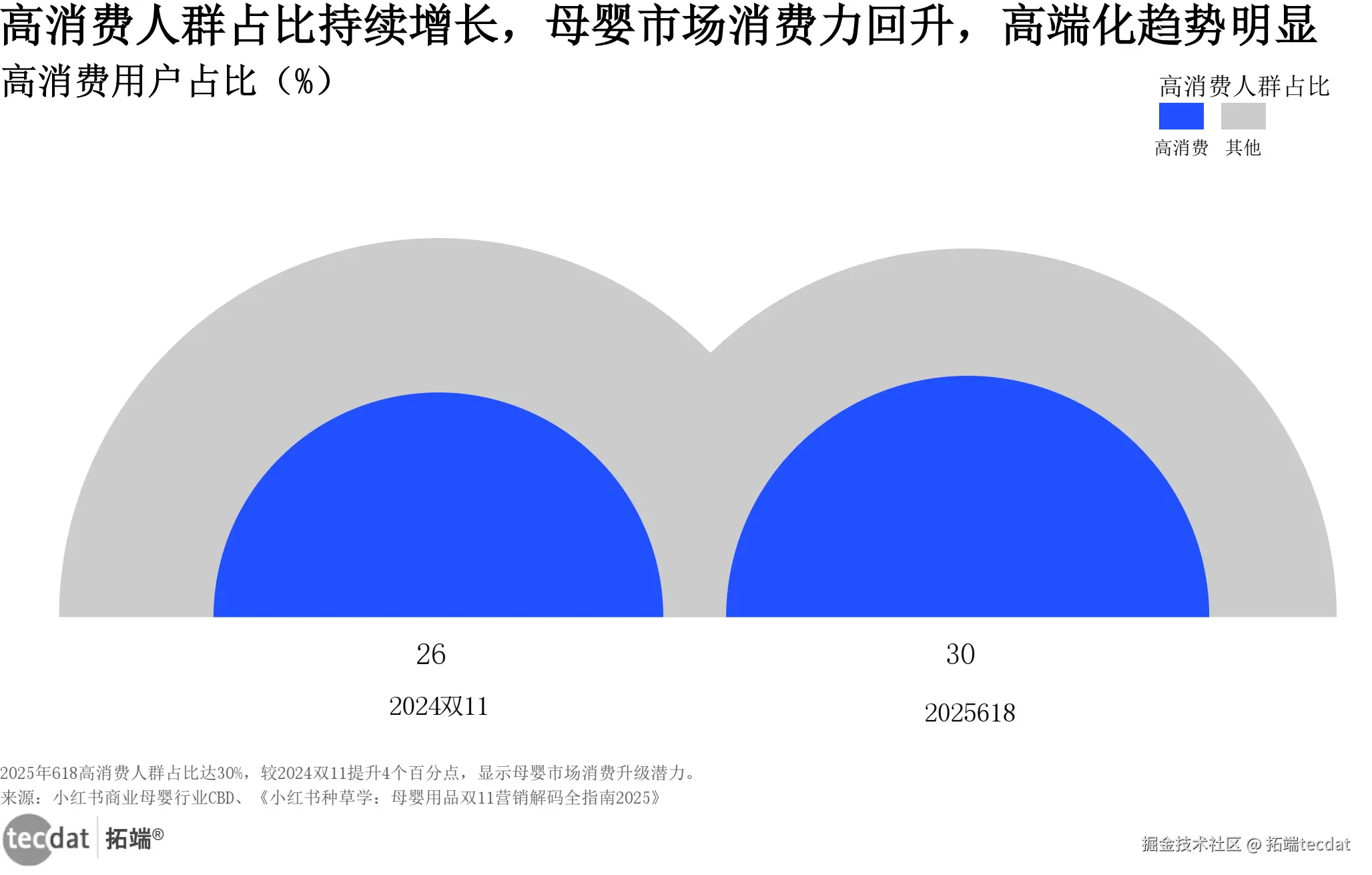 母婴平台高消费用户占比半圆面积图图表数据及PDF模板已分享到会员群