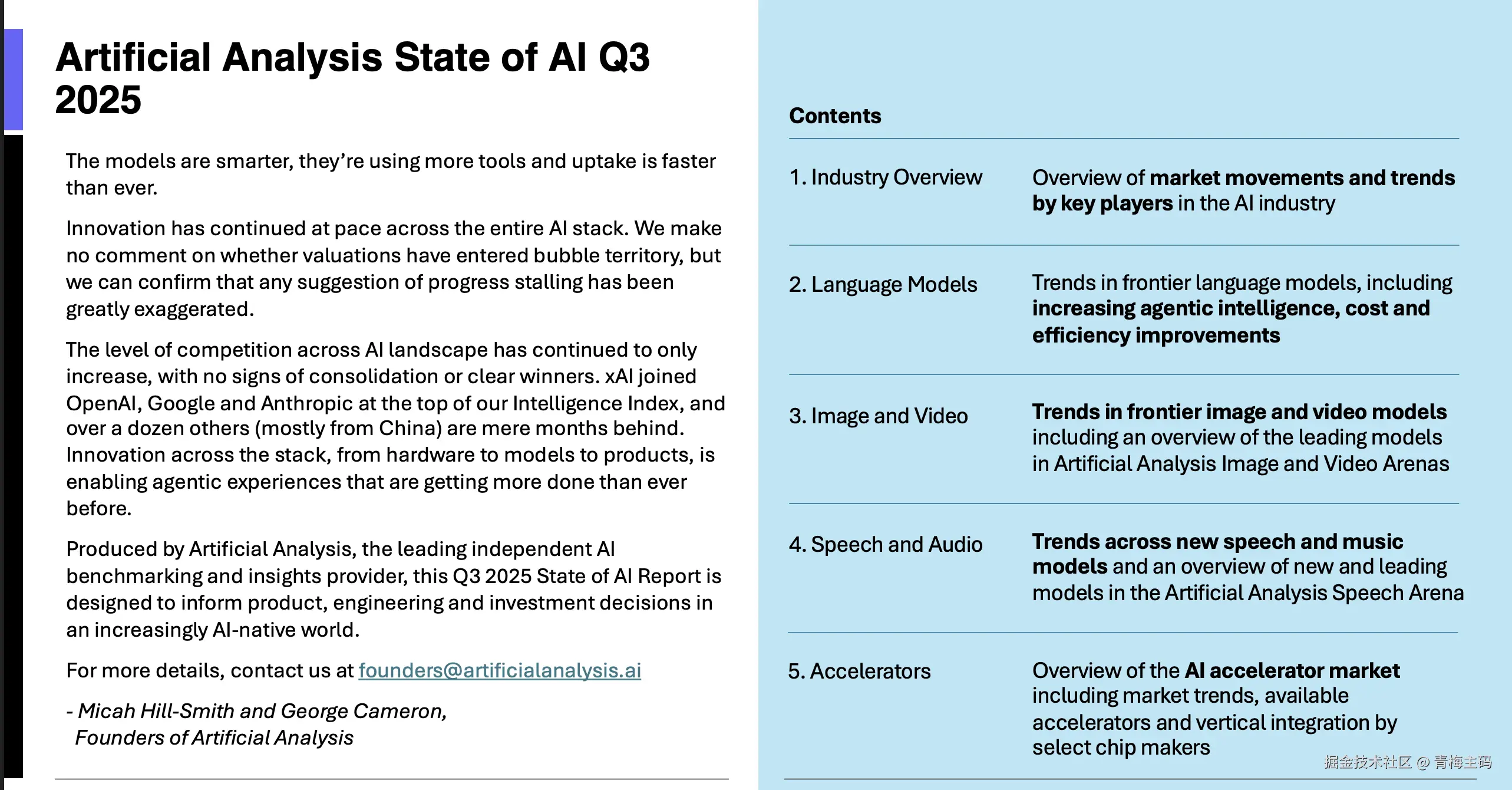 Artificial Analysis 刚刚发布了重磅报告——《2025 年第三季度人工智能亮点》。