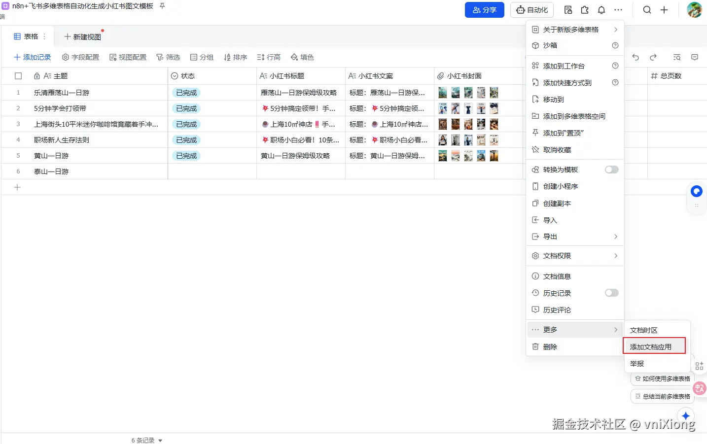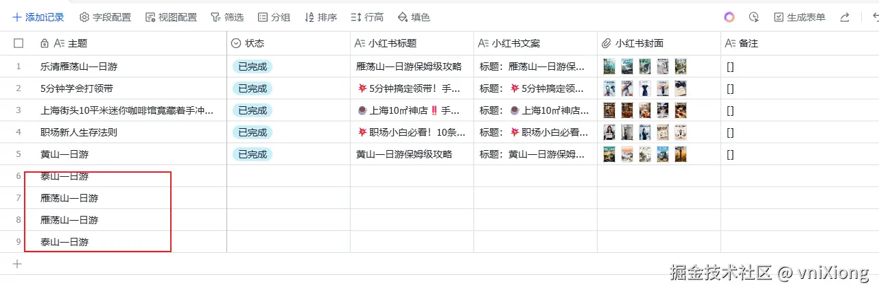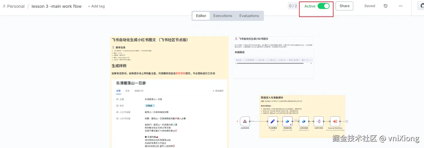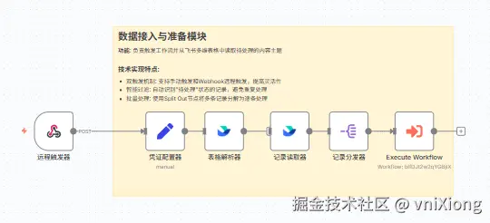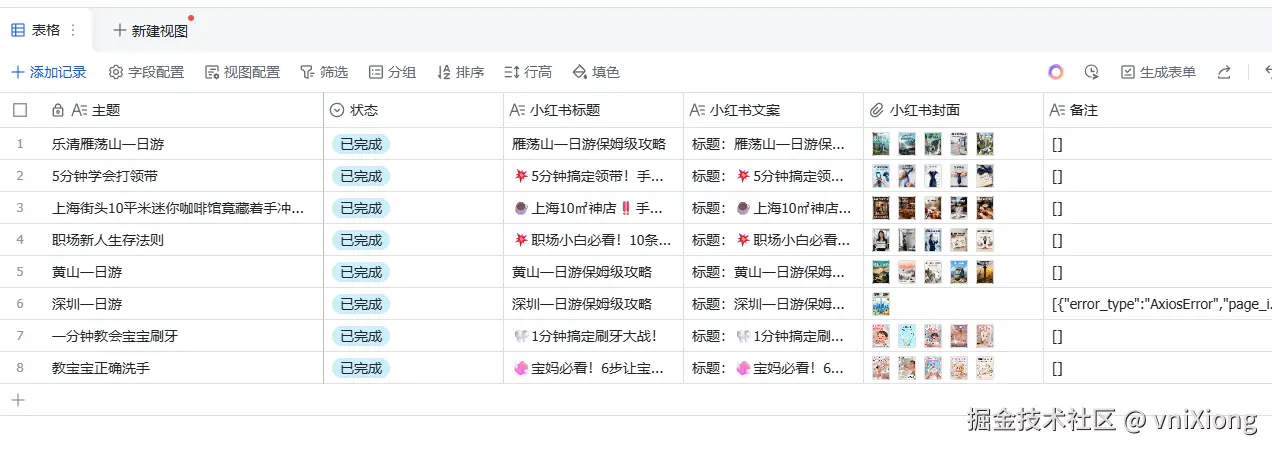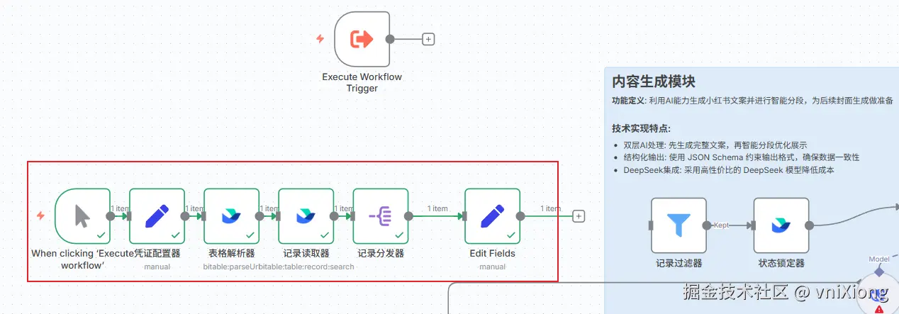 本次完成一个复杂工作流的搭建,主要功能是 通过飞书多维表格,自动化生成小红书图文内容,批量生成,并且在多维表格中批量管理,并自动发布到小红书图文平台。