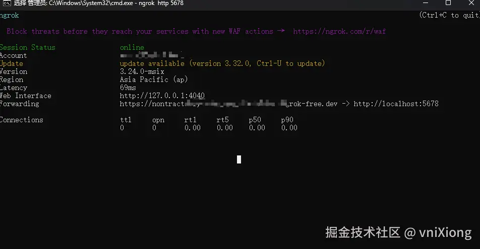 由于内网穿透具有一定的风险性,当不使用内网穿透的时候,直接关闭刚才执行 ngrok命令的 cmd 命令窗口就可以停止 ngrok 了。ngrok 关闭后就不会产生任何网络流量或安全风险了。