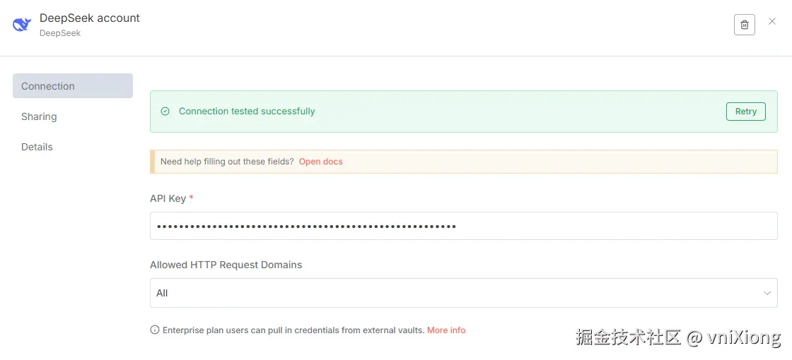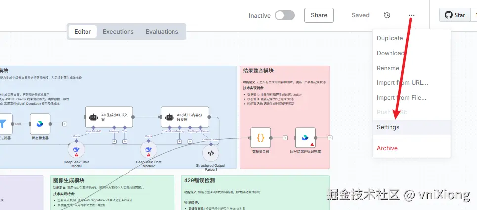 API 密钥就像银行卡密码,泄露会造成经济损失。永远不要把密钥硬编码在代码里。在 n8n 中 ,可以通过环境变量的形式配置,这样在分享工作流时,不会导致密钥的泄露。