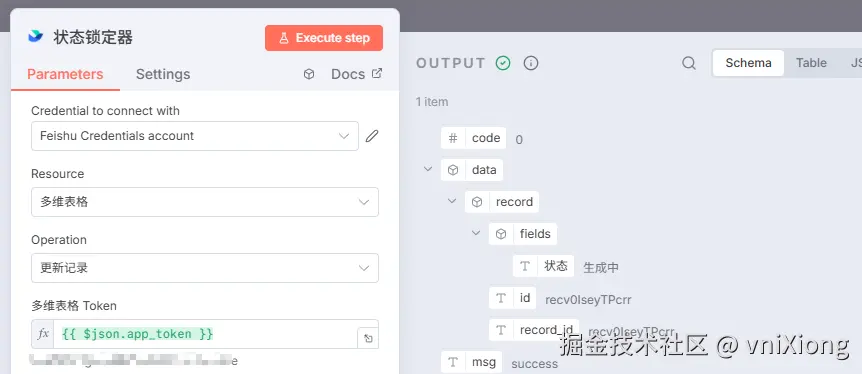 好了,n8n 中的配置就完成了,现在回到 飞书多维表格中 配置触发器。