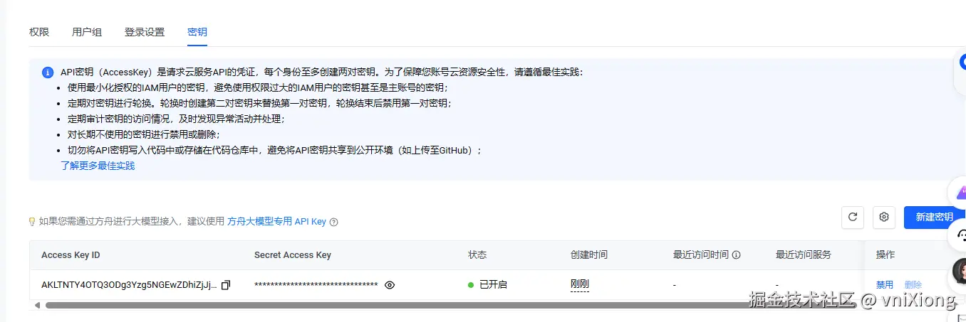 获取 Accass key ,API 访问密钥申请:console.volcengine.com/iam/keymana…