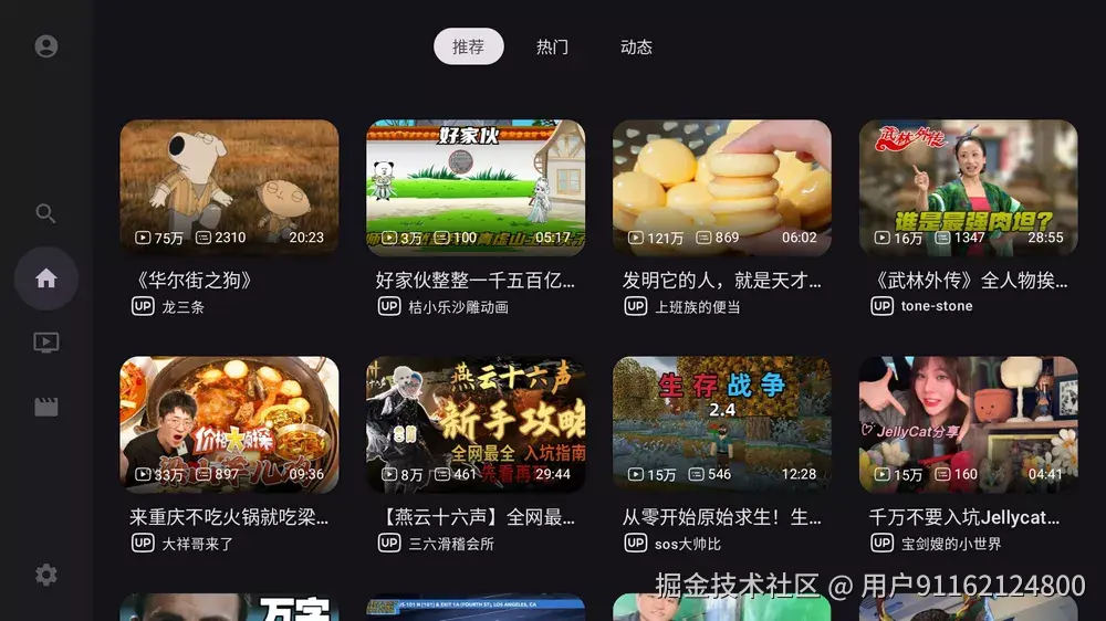 那么这次又一大佬出手,不仅支持动态视频,而且画质逆天,支持4K、真彩HDR甚至杜比视界,BV同样也是由个人开发的第三方哔哩哔哩TV版,目前功能比较单一,仅支持看热门和动态视频,但是画质很逆天。