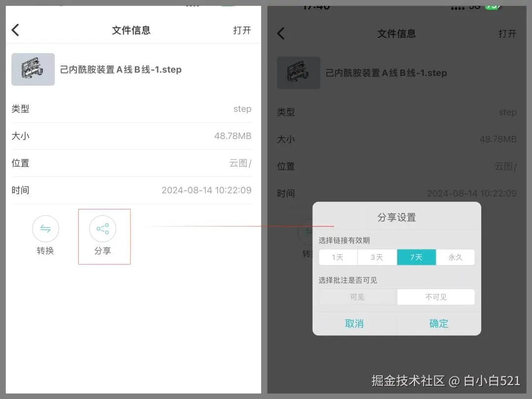 对于已经转换的三维图纸,可直接分享给小伙伴,对方无需再进行二次转换,完美实现图纸共享,实时交流图纸意见。