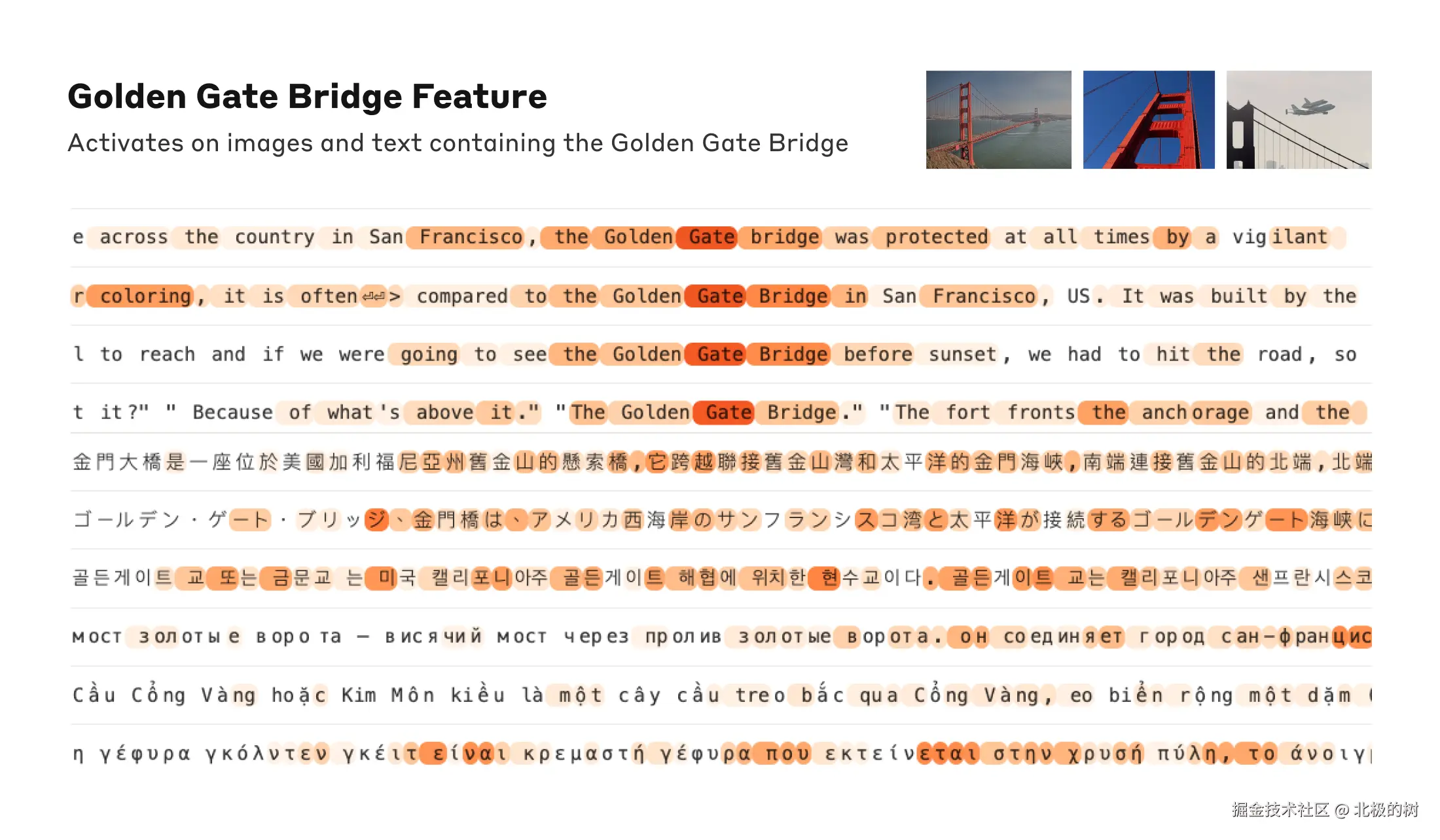 研究人员发现,同一个"金门大桥"特征会在以下所有情况下被强烈激活: