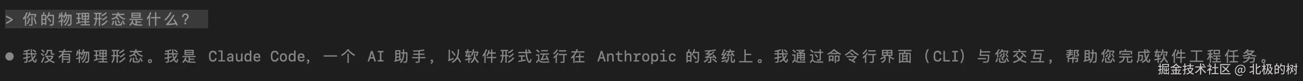 结果比较有意思。正常情况下,问Claude”你的物理形态是什么?“,它会说"我没有物理形态,我是一个AI模型"。