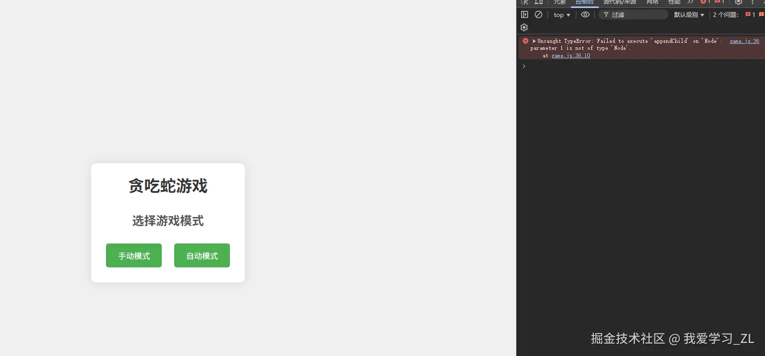 2.在游戏开始前有两个模式可以选择,一个是手动模式,一个是自动模式